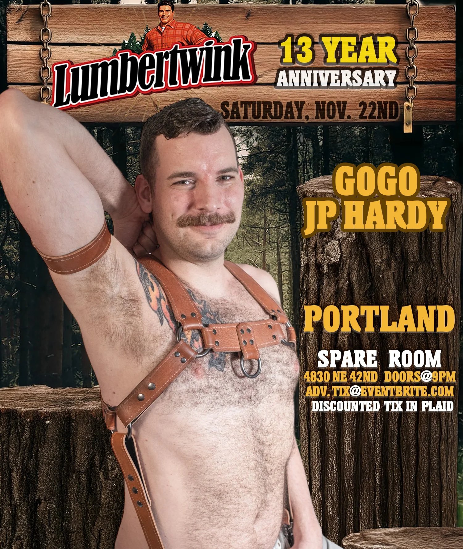 Come and blow out our candle with us + DJs Bro Hoe & Will Jack! THANK YOU for 13 incredible years in PORTLAND!! Dance along with our hot Lumber GoGos and get into a full log jam with 100s of plaid clad Lumbertwinks!